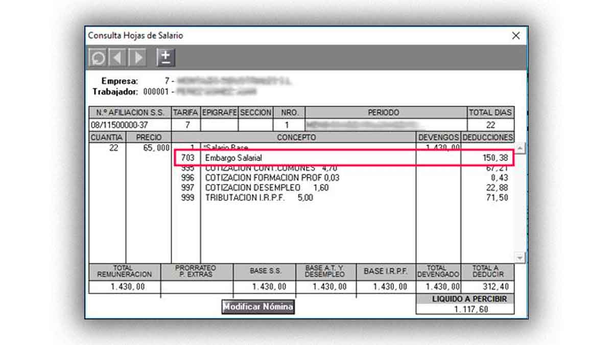 - Si hay dos pagadores, verifica que no se ha duplicado el tramo inembargable.